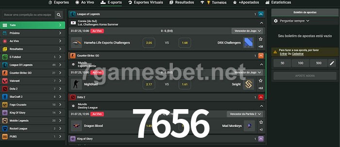 A aposta 7656 oferece aos jogadores a experiência mais conveniente de apostas em eSports!